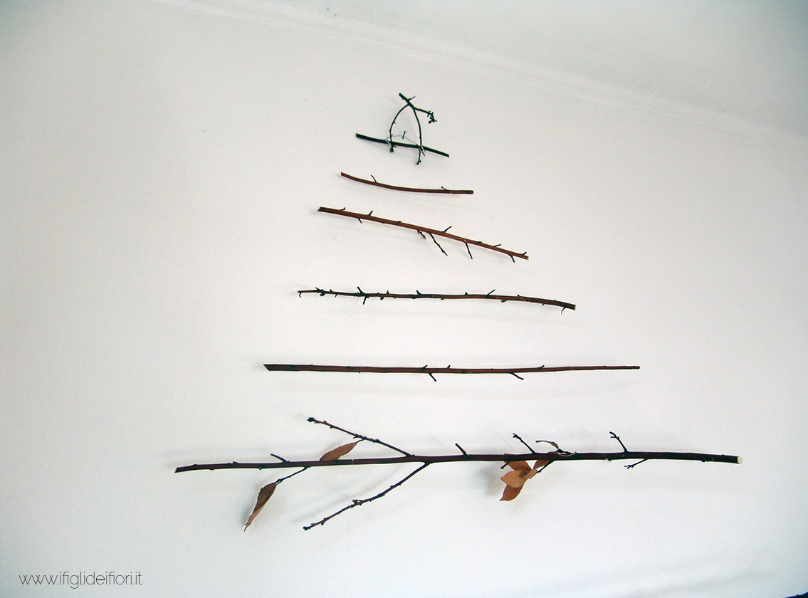 Quest'anno vi proponiamo questa alternativa: un abete versione bidimensionale costruito con materiale naturale (rami secchi o di potatura) che tiene anche poco spazio perché si appende, ed è pure profumato!