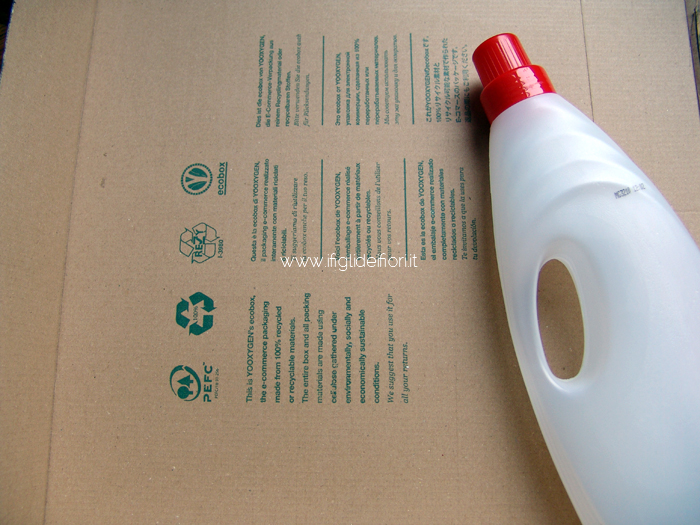 1_Togli le etichette dal flacone di detersivo e sciacqualo con acqua.