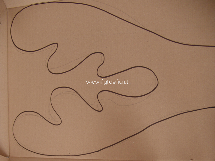 2_Disegna sul cartoncino i palchi della renna lasciando un pezzo di cartone, dove le corna si congiungono, per incollare il flacone (per disegnare le corna ramificate traccia, per ognuna, un enorme "3" con tre pance e unisci gli estremi con una linea arrotondata (come in figura).